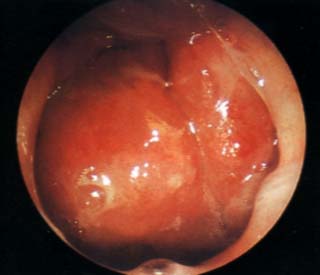 粘连性中耳炎:鼓室硬化和粘连性中耳炎都是中耳炎迁延过久,导致的永久性、非活动性的不可逆性病变。其中以机化粘连为主者,称为粘连性中耳炎;而以透明样变性、钙化为主甚至出现骨化者,称为鼓室硬化。两者的临床症状和表现及病史极为相似。鼓室硬化斑块出现钙化或骨化后,在HRCT上可明确的诊断,而在出现钙化或骨化之前,在HRCT上很难区分,均表现为鼓膜正常或增厚、内陷 。鼓室内出现软组织密度影和骨壁、听骨链相连。鉴别方法主要通过病理或手术证实。