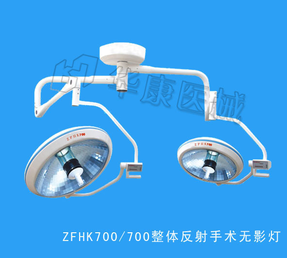 - 优势:整体反射无影灯(吊式)能够给手术室照明亮度提供保证,手术室外科医师必须能够精确的分辨轮廓、颜色和移动,因此需要接近日光质量的光强度,最少为10万照度的光照强度,此整体反射无影灯就可以提供单灯最大达15万照度的亮度,并且此灯的亮度均可进行无级调节,这款无影灯在手术过程中如遇故障,可以自动切换备用灯泡,时间为0.3秒,因此此款整体反射无影灯能够提供安全的手术照明。