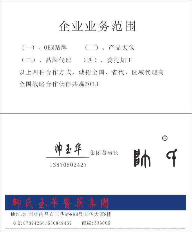 - 渠道:连锁药店,零售终端,诊所,医院临床,广告炒作,会议营销,电话营销,批发物流,连锁加盟,其它渠道