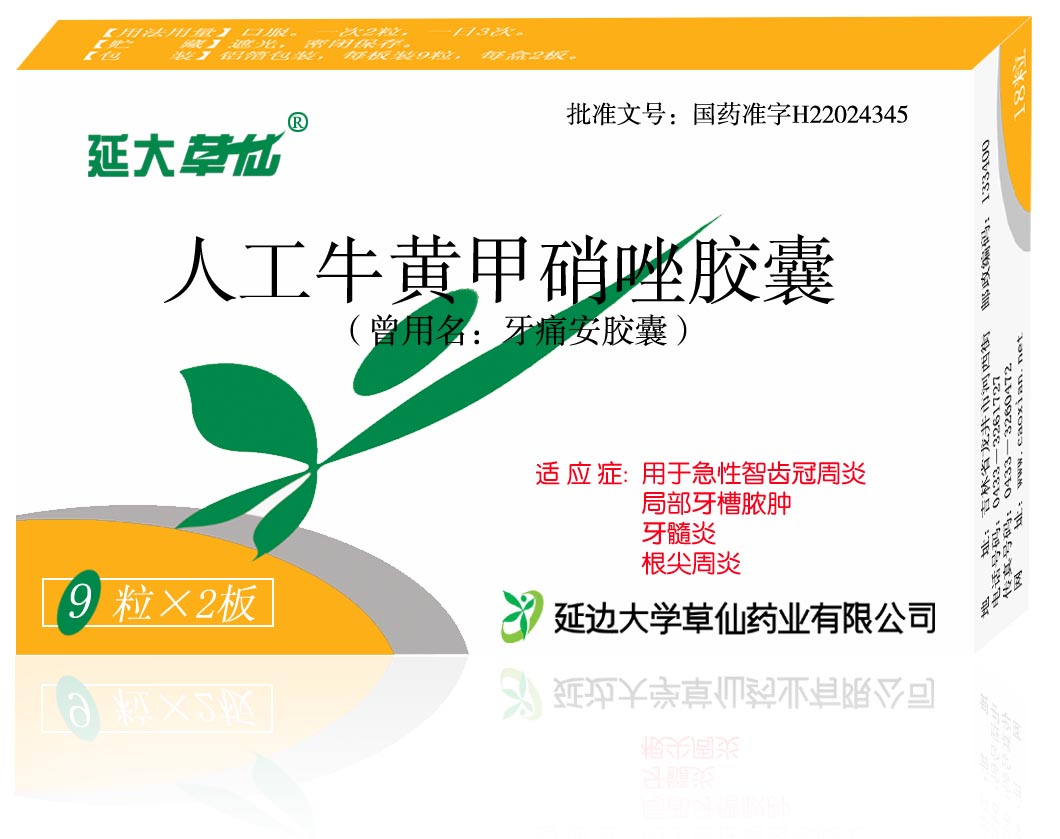 • 人工牛黄甲硝唑胶囊(牙痛安胶囊)